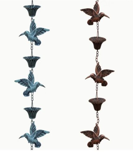 โซ่ฝนโลหะตกแต่งขนาดลายนกฮัมมิ่งเบิร์ดสีน้ำตาลโบราณบนถ้วย