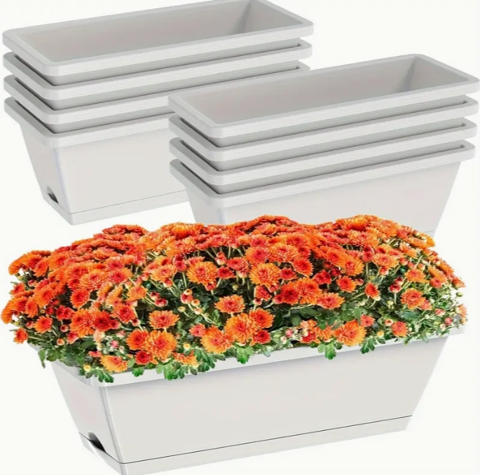 ชุดกระถางสี่เหลี่ยมขนาดใหญ่ 4 ชิ้น – กันน้ำ, พลาสติกหนาสำหรับสวนใน/นอกอาคาร & ระเบียง