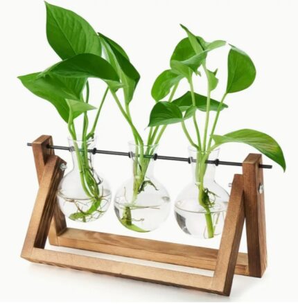 ขาตั้งไม้ 3 กระถางดอกไม้หลอดแก้ว